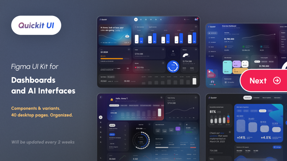 Quickit – UI Kit for Dashboards and AI (Figma, Sketch, XD)
